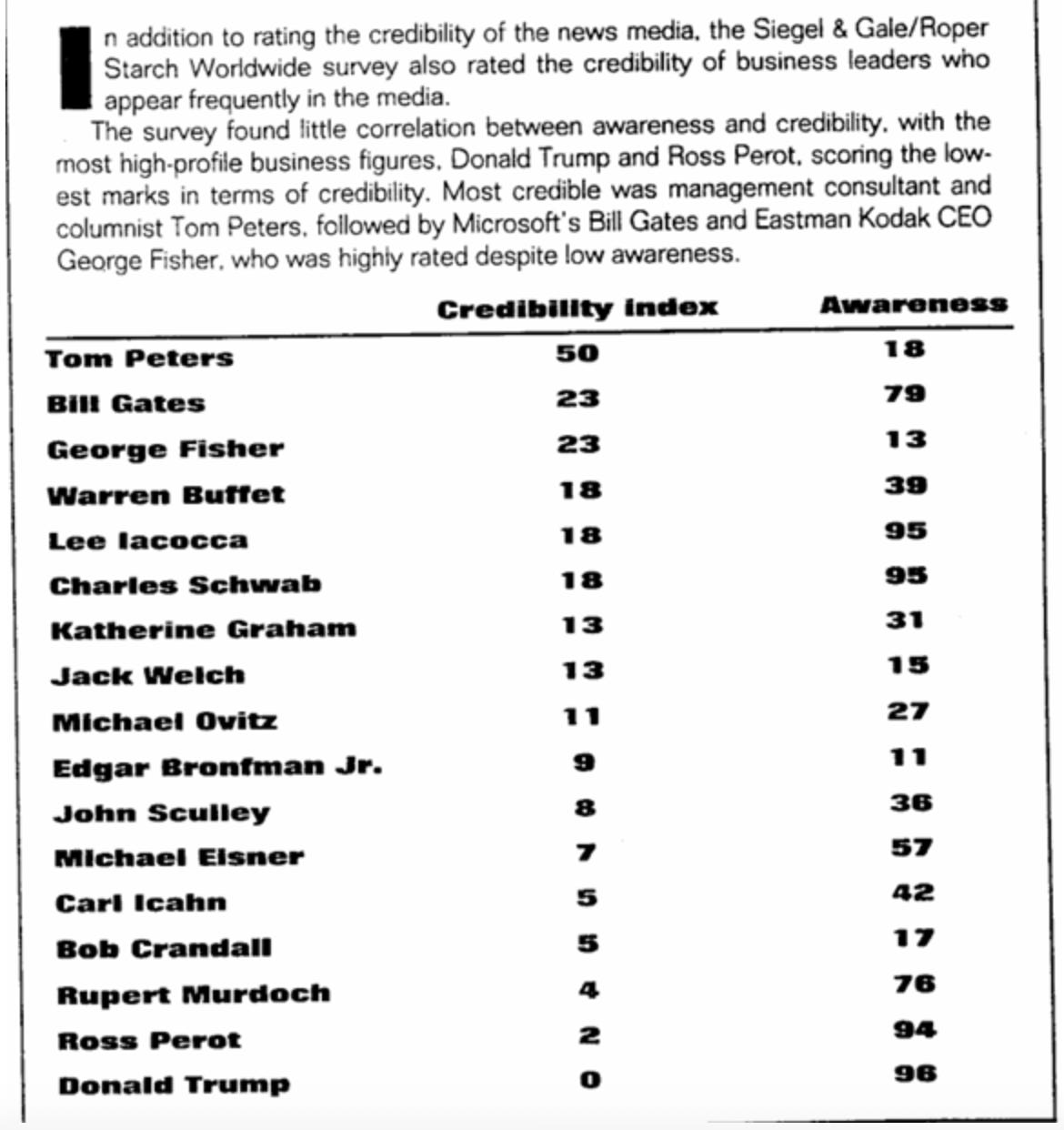 The same article also ranked individuals based on their credibility and the frequency of their media appearances. Have a look at who lands at the bottom of the credibility index: